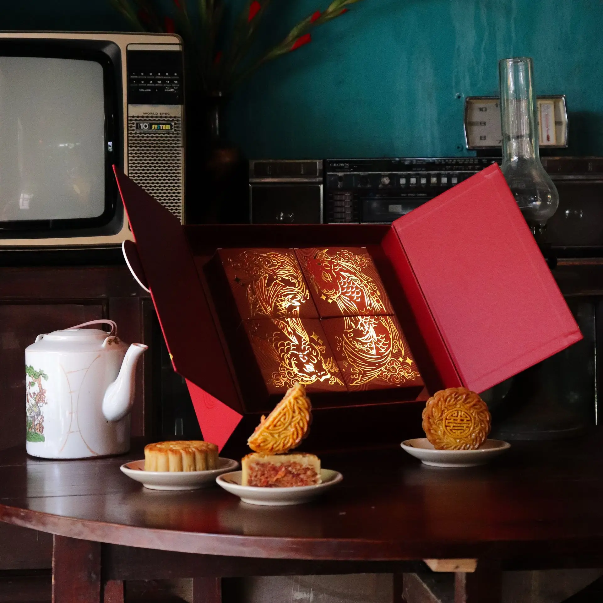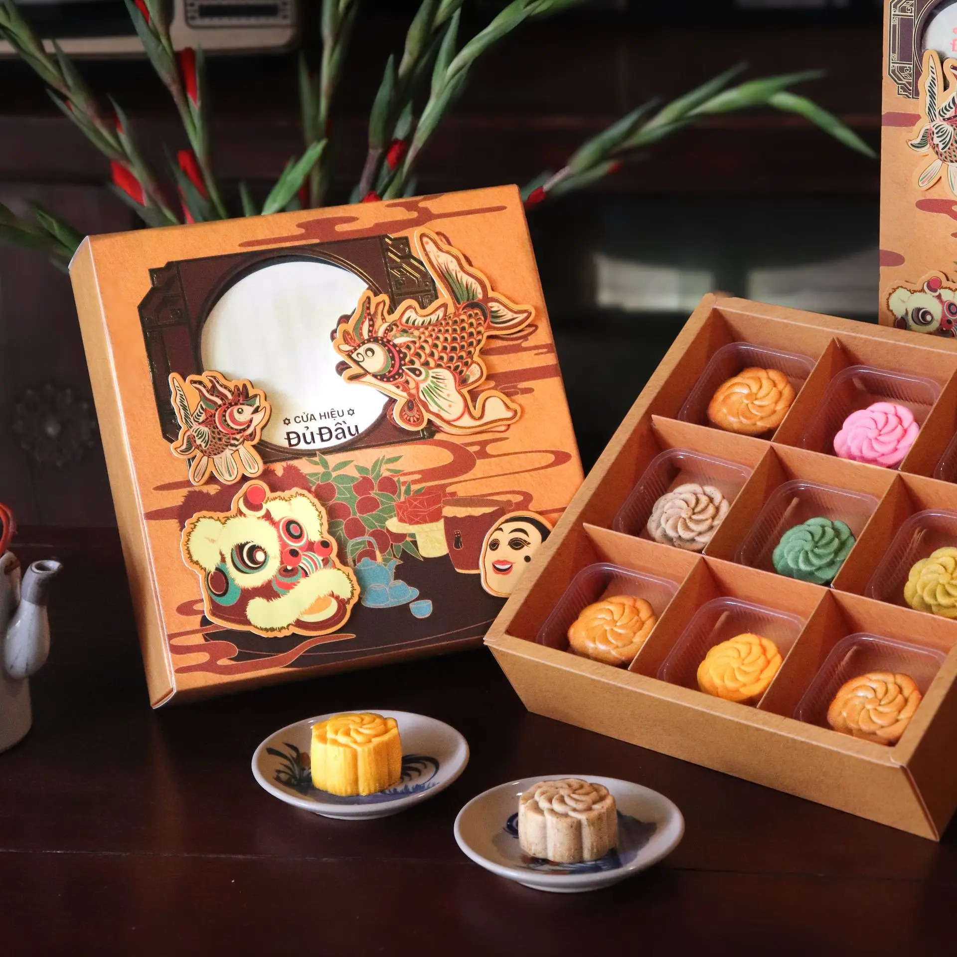 4 mẫu thiết kế hộp quà độc quyền, từ 3 bánh, 4 bánh đến 6 bánh, 9 bánh. Phù hợp với mọi nhu cầu tặng biếu nhưng vẫn giữ được giá cả vô cùng phải chăng.